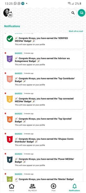 8 Badges. Hii ndio ile recognition nimeget hii month after spending time most hapa Mesh reading post za fellow mesher, posting my business experience, kujichanua na views from wasee we share same interest, kutuma and accept connection from wasee tuko same field. Je wewe umeget ngapi hii week? And ungependa kuwa na vigezo zenye zinakusaidia kuget recognition and ku huild audinece?