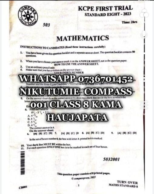 💎COMPASS FIRST TRIAL-001 STD 8 💎REVEALED 001-GRADE 7 EXAMS-JSS) 💎JESMA SHINE TRIAL 1 2023-Std 8 💎KENYA NATIONAL EXAMINATION SERIES 001-2023-Std 8 💎SOARING HIGH 2023 CLASS 8-2023 🪀DISTINCTION 001 GRADE 6-2023 🪀JESMA 001 GRADE 6-2023 🪀THE EFFECTIVE TRIAL GRADE 6 -2023 💎DISCOVERY COUNSEL CLASS 8-2023 💎KENYA NATIONAL EXAMINATION BOARD KNeB-2023 💎TARGETER WINGS 001 class 8-2023 💎TARGETER TRACKER 001-2023 ❗KCPE REVEALED 2023. 📗GRADE 7 LESSON NOTES AND UPDATED SCHEMES OF WORK. 💎DISTINCTION SCHOOL BASED ASSESSMENT TEST CODE 001 💎DISTINCTION EXAMINATION PANEL 001 TERM 1 2023 💎SIGNAL 001 TERM 1 2023 💎JESMA 001 TERM 1 2023 💎TARGETER 001 TERM 1 2023 💎KCPE TIMER 001 👉NOW AVAILABLE. WHATSAPP 0736701452 OR TAP HTTPS://WA.ME/c/254736701452 UPATE.