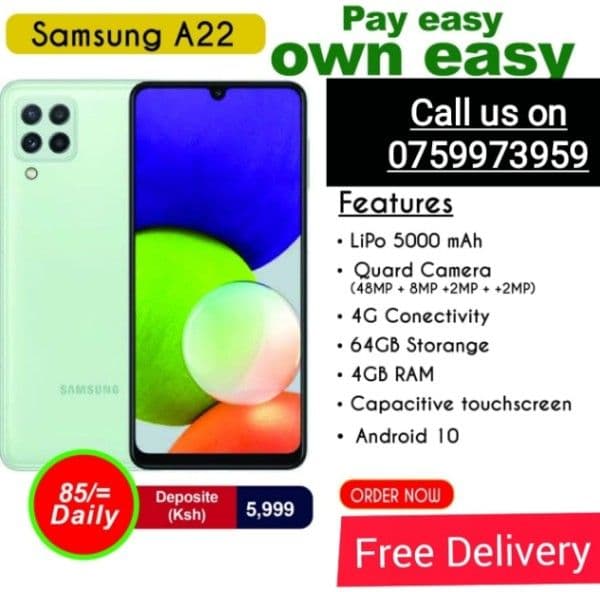 🔹Samsung A22 Deposit 5,999 then 85 daily