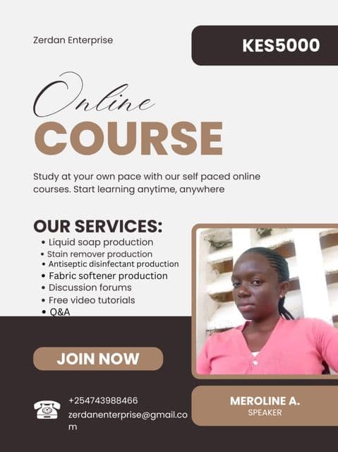 I'm thrilled to inform you that our company, Zerdan Enterprise Cleaners, is offering an online course on liquid detergents production.