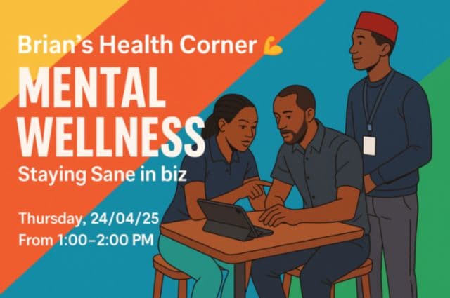 Leo nimekam kuwakaribisha kwa session moja moto kama pasi on #Thur 😅😅 utakuwa na a few minutes from #1:00 to 2:00PM hio day,🤔 Welcome to Brian's Health Corner 💪 tuchanuane about how to stay #sane kwa biz na pia kujengana na ideas moto moto 🔥🔥 see you then 💥