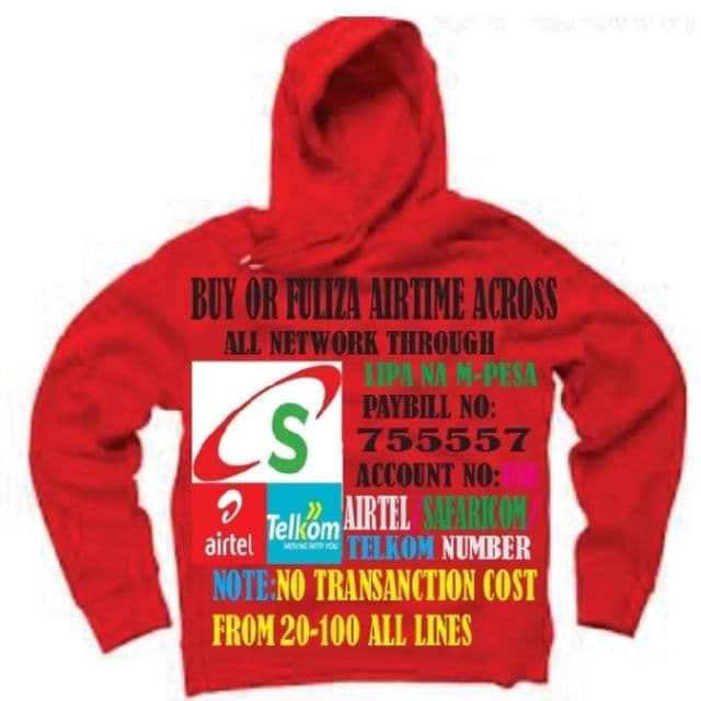 Thank you for contacting AMOHCAN COMM!.CHECK YOUR AIRTEL NUMBER 1001# OR TELKOM *130# AND BUY AIRTIME FROM SAFARICOM USING PAYBILL NUMBER 755557 ACCOUNT AIRTEL OR TELKOM NUMBER as the account number ✍️ Thank you for your message.mean while this is how you can get airtime Steps to follow (Buy airtime) ¹.Go to M-pesa- Lipa na mpesa ². Paybill ³. Enter Business No. 755557 ⁴.account no your Airtel or telkom or safaricom(i.e0700000000) ⁵. Enter Amount ⁶. PIN then confirmed transaction No transaction cost from 5 to 100 is free Thanks for purchase airtime with us Transaction cost 5 - 100 = 0 101 - 999 = 23 1000 - 4999 =34 5000- 9999 = 85 Customer care 0725951788
